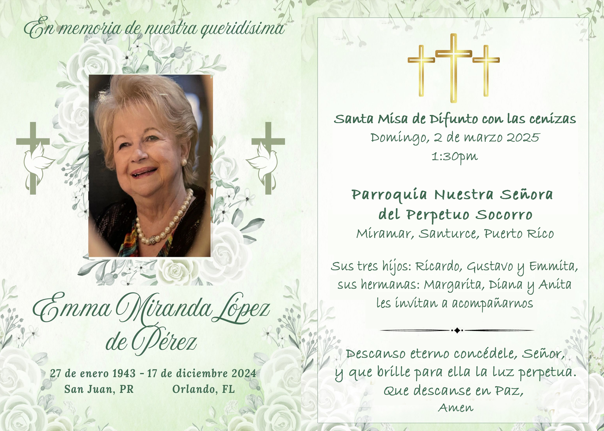 En memoria de nuestra queridísima. 27 de enero 1943 - 17 de diciembre 2024